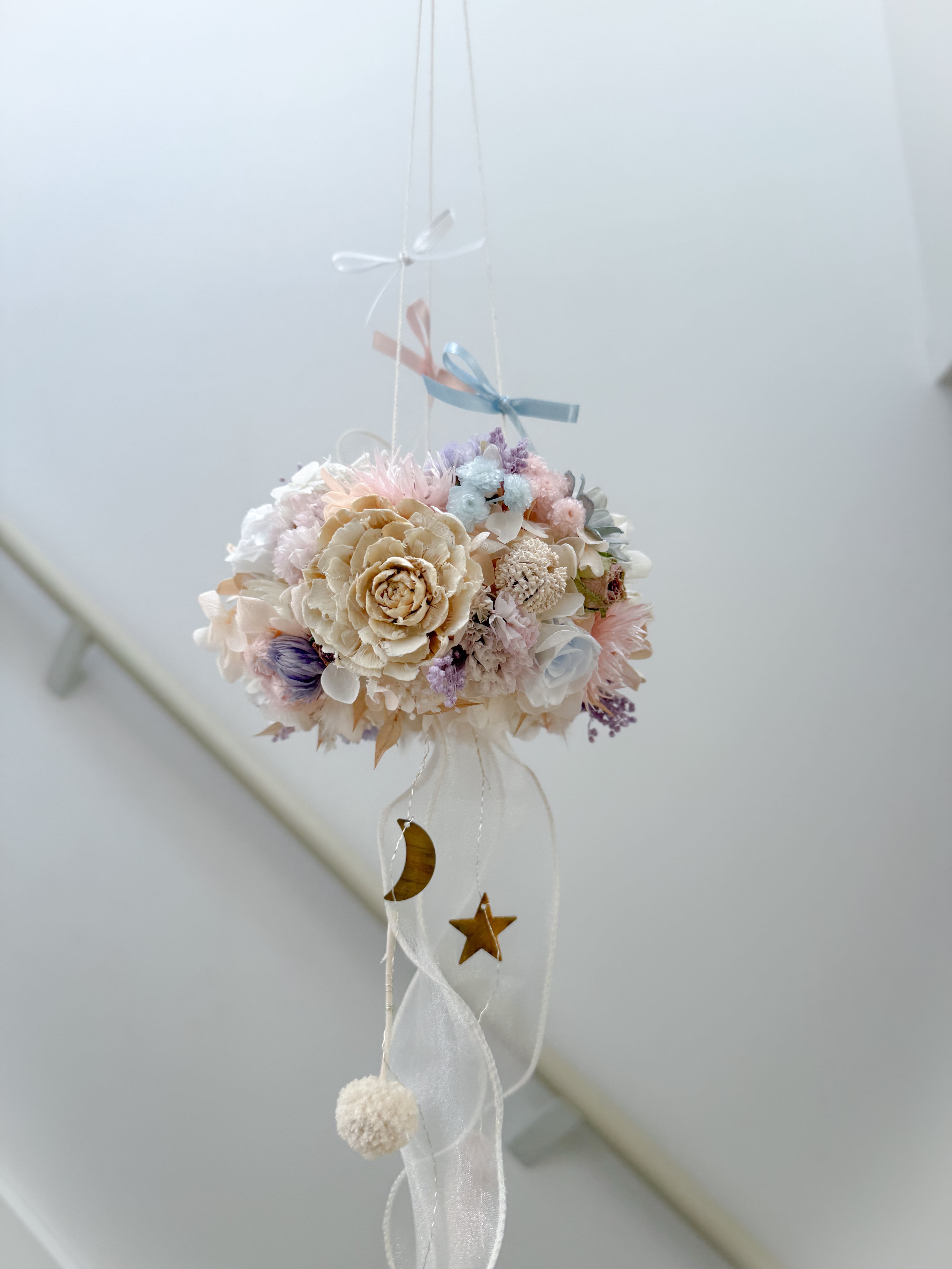 月や星にお花、ふわふわのリボンもそっとゆらめかせました。